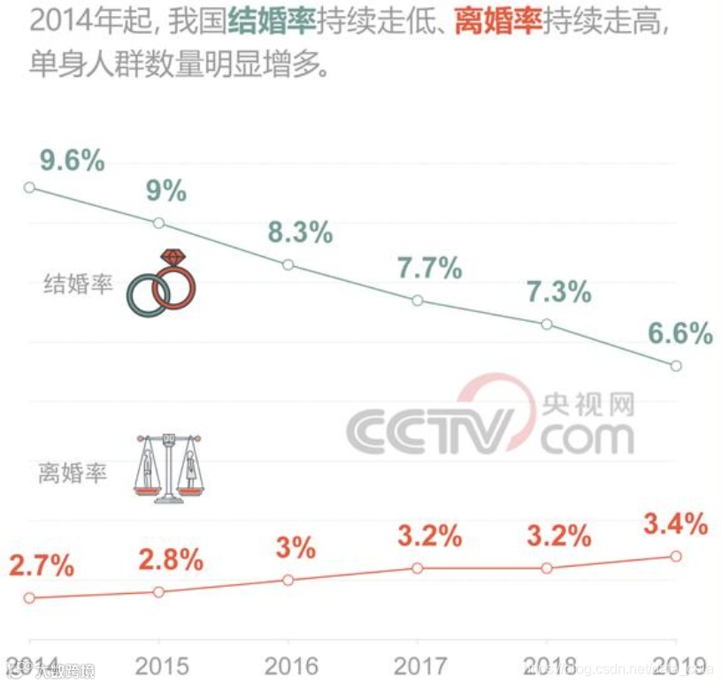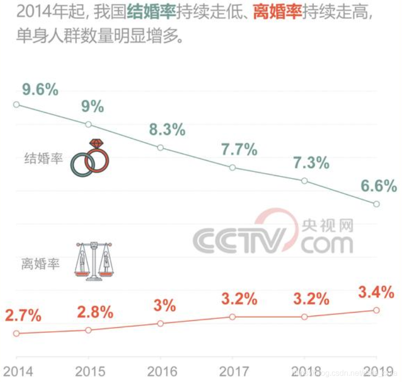 这和离婚率的持续走高和结婚率的逐年下跌对比着看,还是能发现一些婚恋观念的变化趋势的。