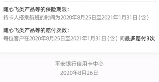 而平安银行的力度更大,标准白信用卡,只要延误2小时,就可以赔2000。