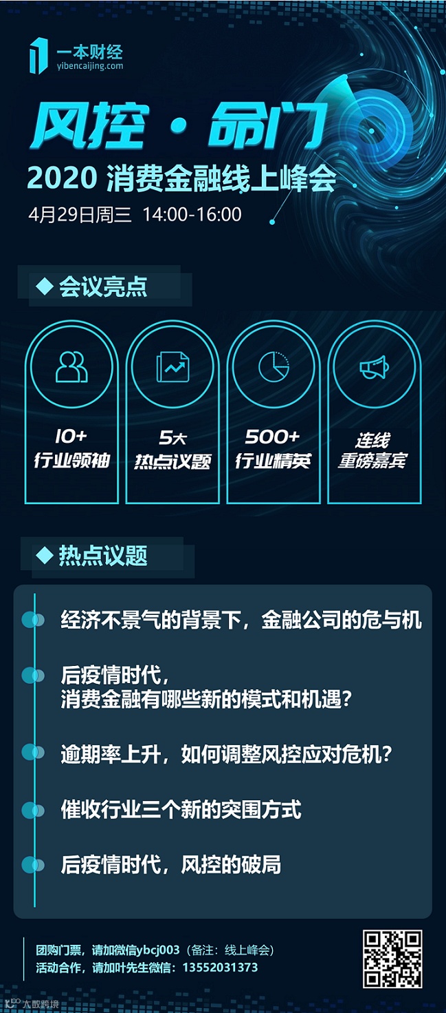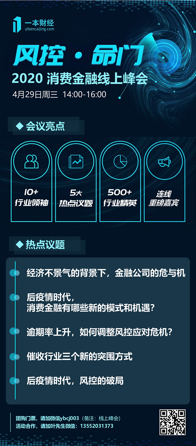 4月29日,一本财经将举办“风控·命门”2020年消费金融风控大会。