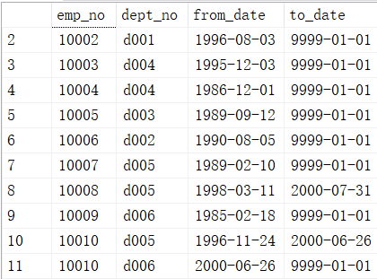 from dept_emp de