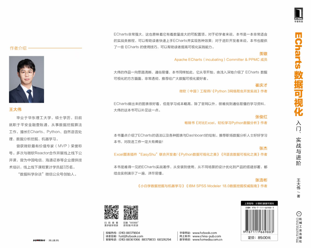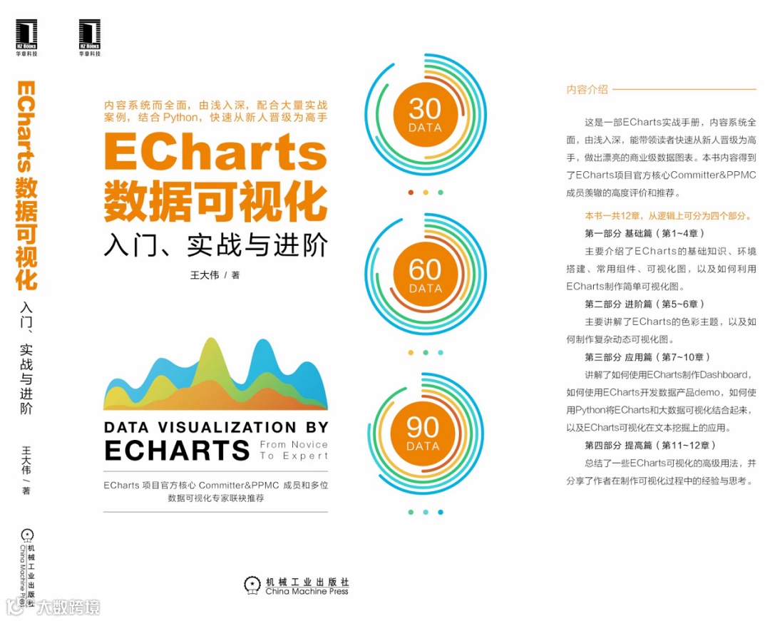 ECharts做出来的图表很好看,但是学习成本略高,除了官网以外,很难找到比较通俗易懂的学习资料,大伟的这本书可以补足这一点。
