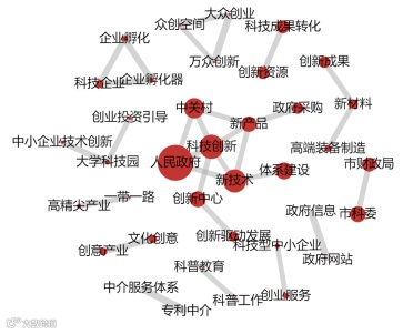 通过关系网络图展示文本挖掘的结果,发现政策文件中的重点领域和关键词