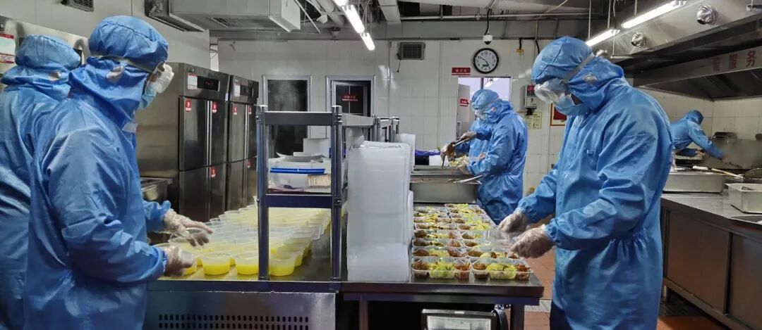 “食堂保洁、厨师十几个人,穿着隔离服、护目镜、口罩做饭,全副武装。”相关负责人称。