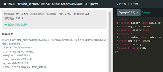 还有牛客网题库中的数据库SQL实战,有60道基于sqlite实战题,写好后可以调试,不会的可以看一下题解和讨论,看看别人是怎么做的,不过还是建议在自己的思考下完成,不好的地方就是有些题干描述的很不明确,按照自己理解的写出来调试不通过,只能看下大家的讨论才能明白题目到底说了个啥。