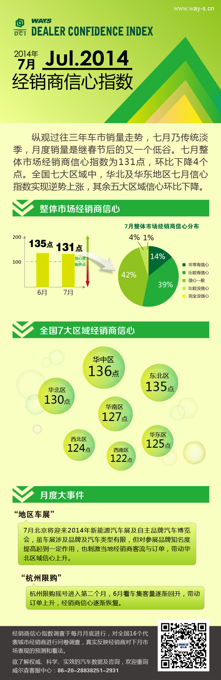 导读:纵观过往三年车市销量走势,七月乃传统淡季,月度销量是继春节后的又一个低谷。七月整体市场经销商信心指数为131点,环比下降4个点。