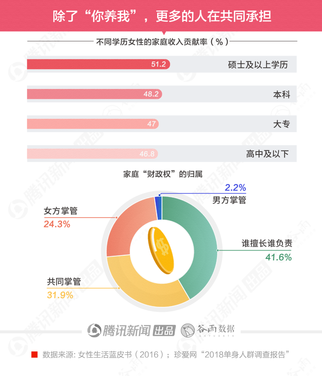 中国妇女杂志社等机构联合发布的《女性生活蓝皮书》指出,女性的家庭收入贡献率在逐渐提高,高学历女性的收入贡献率会占过半比重。