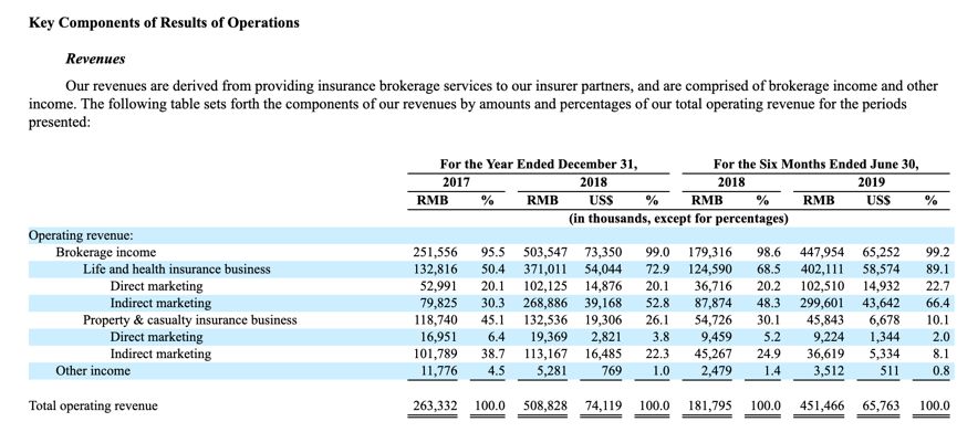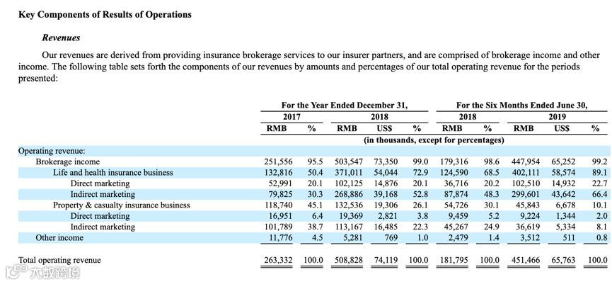 招股书中,将2018年和2019年上半年营业收入的大幅增长,主要归结于人寿和健康保险产品的收入。