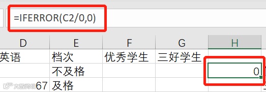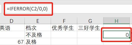 这时我用iferror(C2/0,0)函数,表示如果这个公式出现了错误值,则显示为0.