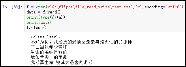 f = open(r"G:\6Tipdm\file_read_write\test.txt","r",encoding="utf-8")