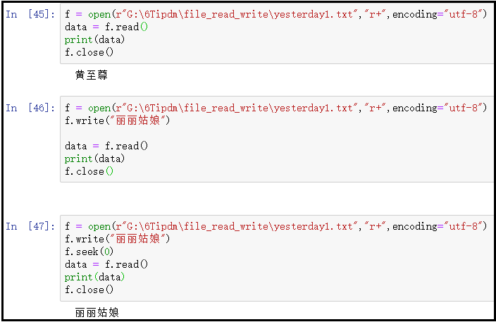 f = open(r"G:\6Tipdm\file_read_write\yesterday4.txt","a+",encoding="utf-8")