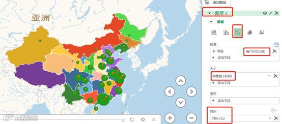 同样地添加图层3,将图层3的可视化改为气泡图。