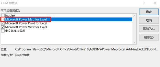 把power map前面的框框勾选上,确定即可,这时再看【三维地图】这个功能就是亮的了。