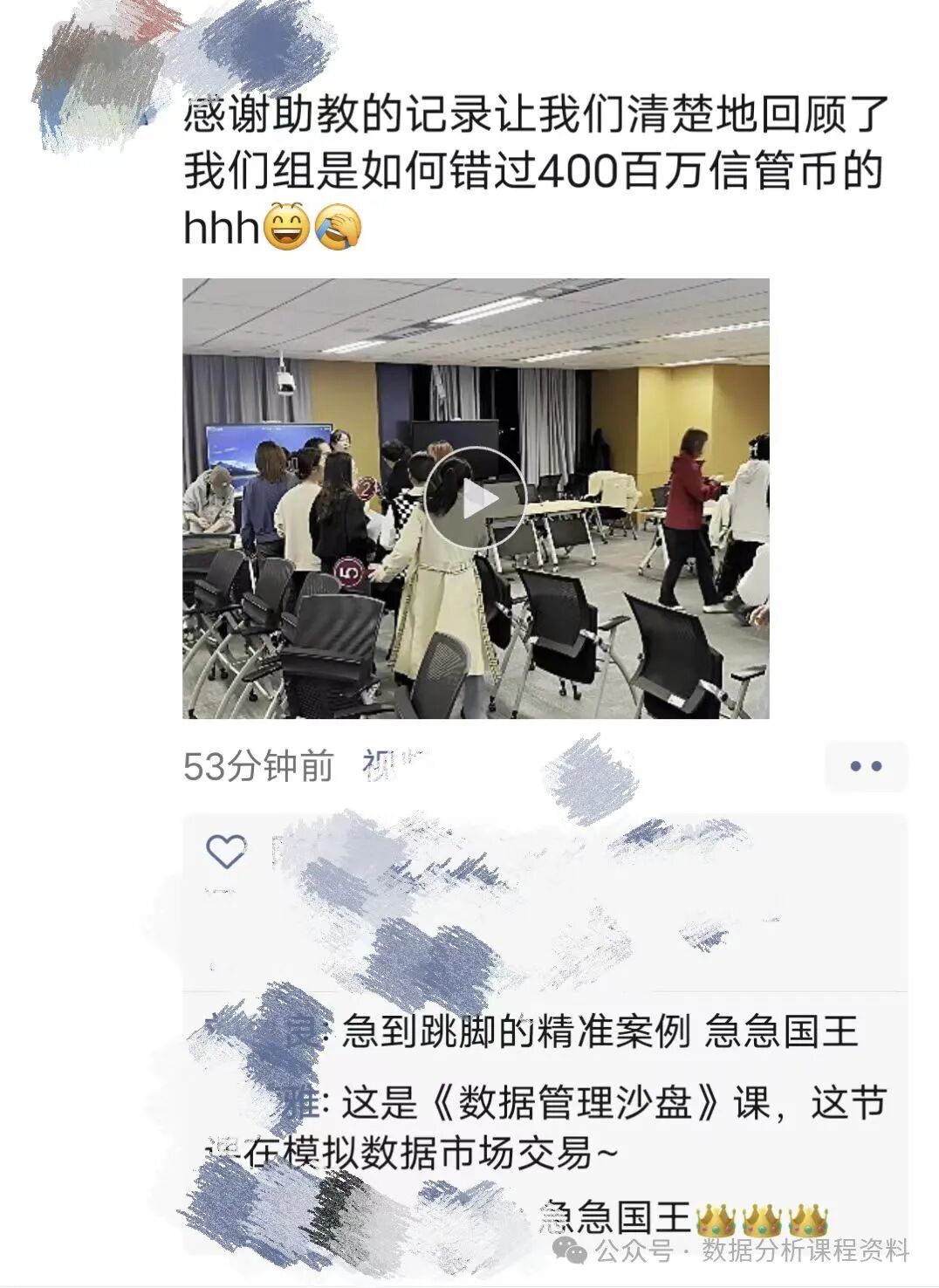 2023年秋季学期,由中国人民大学信息资源管理学院钱明辉教授带领教学团队所开发的数据管理学科领域首门沙盘模拟类课程第二次公开授课。参加了课程学习的同学纷纷在朋友圈表示“最喜欢的课程,体验了不同的角色”“烧脑的沙盘课超好玩”“u1s1,《数据管理沙盘课》yyds”“这知识,它终于进脑子了”,没选上课的同学更是遗憾感叹“错亿”。那么,《数据管理沙盘模拟》究竟是怎样的一门课程?在这门课上到底会学到些啥呢?