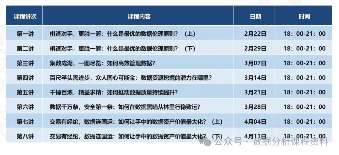 本学期《数据管理沙盘模拟》课程(选修课,2学分)将于2月22日(周四)晚18:00开展首次线下教学,具体教学时间安排如下: