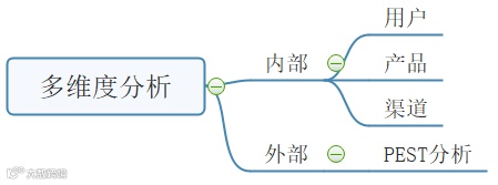 接着再从不同的维度分析,将一个问题拆解成几个子问题,比如可以分别从内部、外部出发,内部又可以细分到新老用户、不同的渠道,以及哪些活动,外部分析可套用PEST模型框架,如市场的变化、用户喜好的变化、竞品的变化等。分别计算每个维度下的次日留存率,定位到具体是哪一个维度留存率的显著下降导致了该指标的变化。