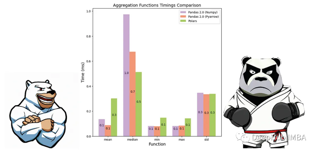 可以看到Polars非常快。但是Pyarrow后端的Pandas 2.0在所有情况下都明显比Polars和Pandas 2.0 (numpy后端)慢。