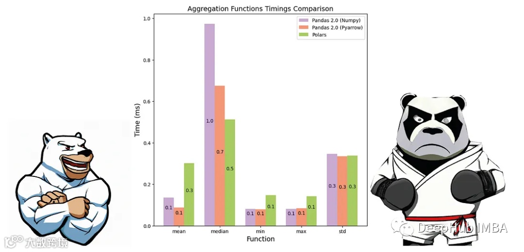 下图中没有显示Pyarrow的Pandas 2.0,因为求值需要1000多秒。
