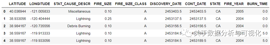 那么这回的数据集的背景我们这里简单的做个介绍,是涉及到1992年到2015年美国境内发生的森林火灾的分布情况,那么这里就有涉及到火灾发生的位置,也就是经纬度坐标,由于数据集是放在sqlite数据库当中,因此数据集的导入也会用到Python当中的sqlite3这个模块
