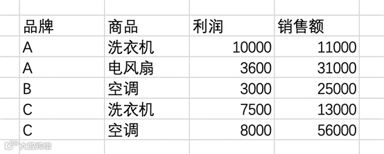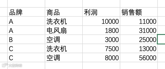 用pivot_table方法制作数据透视表,商品作为行字段,品牌作为列字段,销售额放在数据区,这样设置: