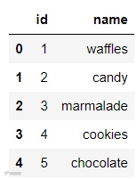 df_sweets = pd.read_sql("SELECT * FROM sweets;", connector)