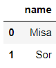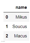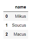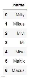 pd.read_sql("SELECT name FROM sweets WHERE name LIKE 'M_'", connector)
