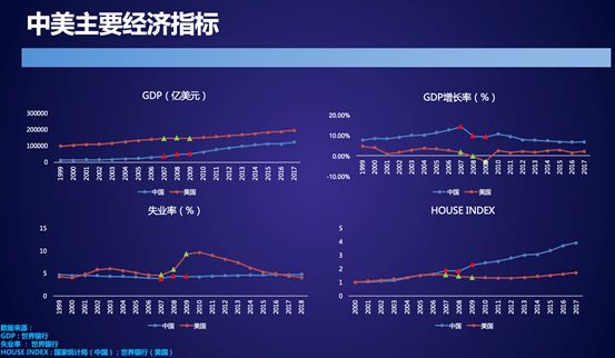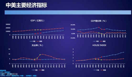 金可冶对比了多组数据,认为和美国的次贷危机相比,中国只能算经济下行。