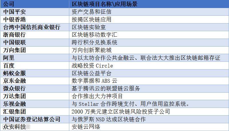 中国平安,成为国内首家加入R3区块链联盟的机构,目前已在资产交易和征信两个场景中上线了区块链技术;