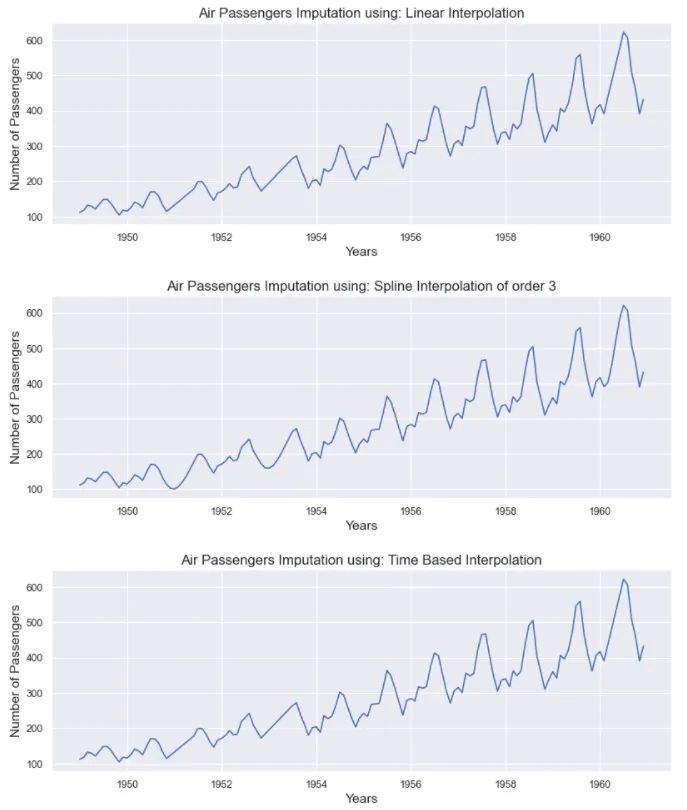 passenger[‘Time’] = passenger[‘Passengers’].interpolate(method=’time’)