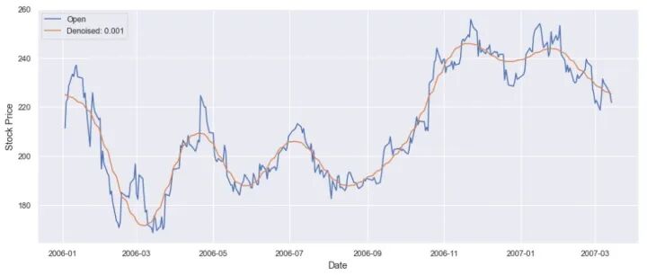 plt.legend([‘Open’,’Denoised: 0.001'])