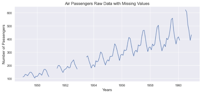 时间序列数据包含大量信息,但通常是不可见的。与时间序列相关的常见问题是无序时间戳、缺失值(或时间戳)、异常值和数据中的噪声。在所有提到的问题中,处理缺失值是最困难的一个,因为传统的插补(一种通过替换缺失值来保留大部分信息来处理缺失数据的技术)方法在处理时间序列数据时不适用。为了分析这个预处理的实时分析,我们将使用 Kaggle 的 Air Passenger 数据集。