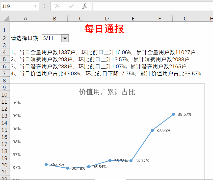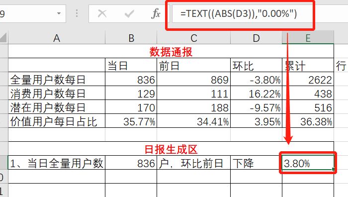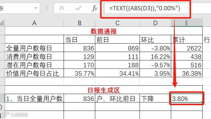 上升下降的环比数虽然也是引用了数据通报区的数,但最好用text函数转化一下。