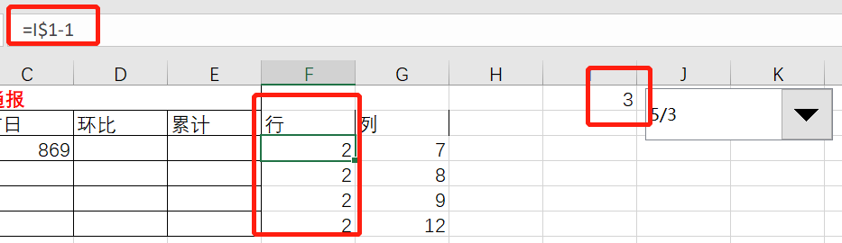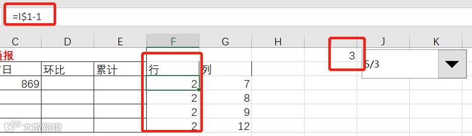 要想实现我们想要的选择日期数据变换的效果,前日的数据的行应该为I1-1,列我们来用match函数选择。