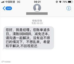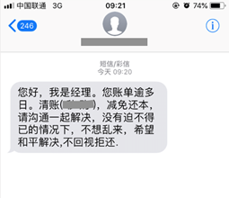 最近,陈辰在某贷款平台借了3000元。刚逾期不久,他就收到了一条“求和”短信。