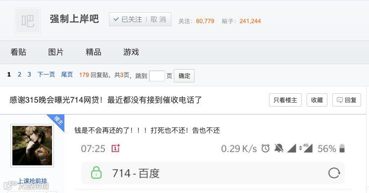 一位老赖在论坛上感谢“3·15”晚会曝光714高炮:“钱不会再还了,打死也不还,告也不还。”