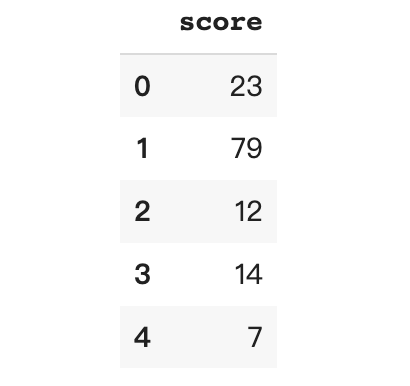df = pd.DataFrame({'score': np.random.randint(0,101,1000)})