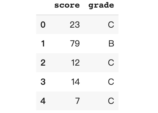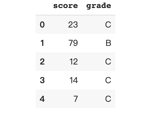 df.loc[df['score'].between(50, 80, 'right'), 'grade'] = 'B'
