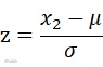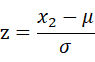 有数据集x1,x2,x3,其平均值为μ,标准差为σ,则其标准分z为: