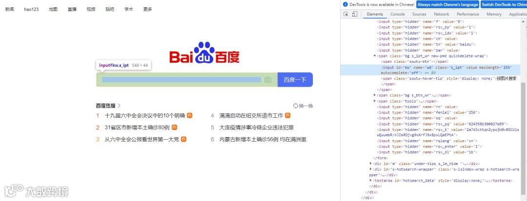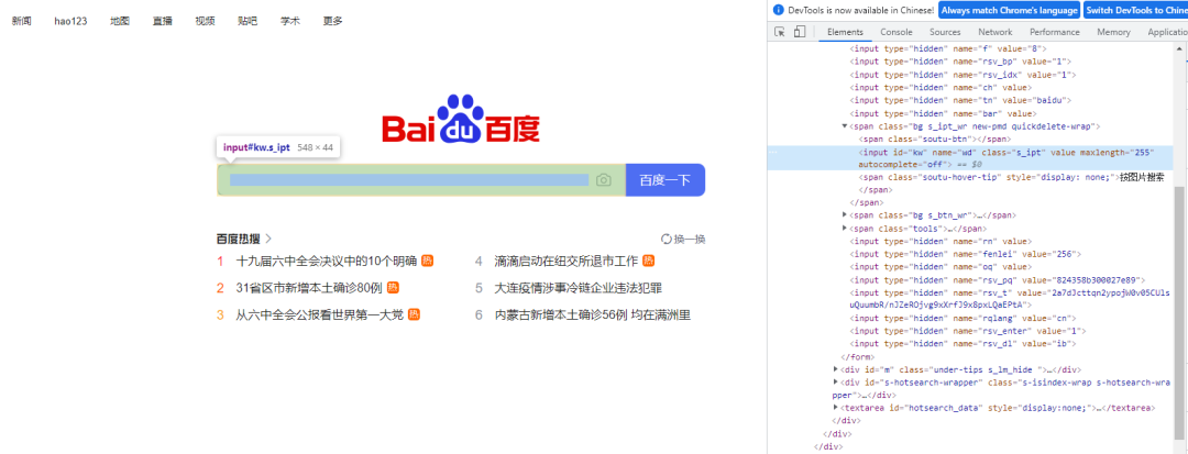 我们仍然以百度首页的搜索框为例,它的HTML代码如下