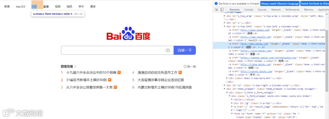 通过linkText()方法来定位“地图”这个元素,代码如下