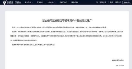 很快,支付宝就发现了这一漏洞,并称:“禁止使用发短信等破坏用户体验的方式推广。”