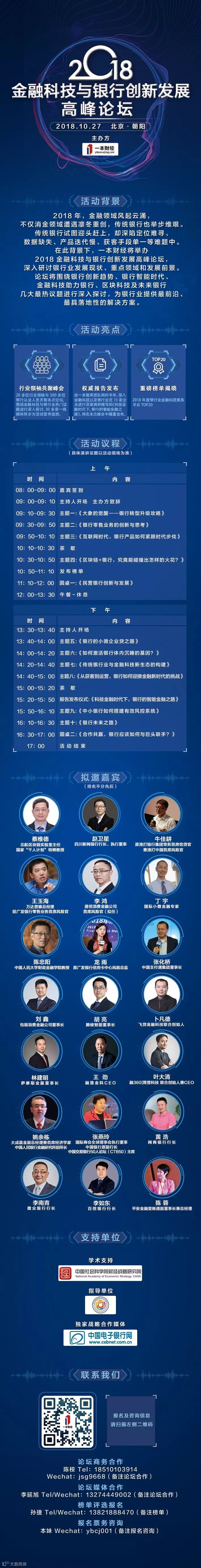 一本财经“2018金融科技与银行创新发展高峰论坛”,10月北京,不见不散。