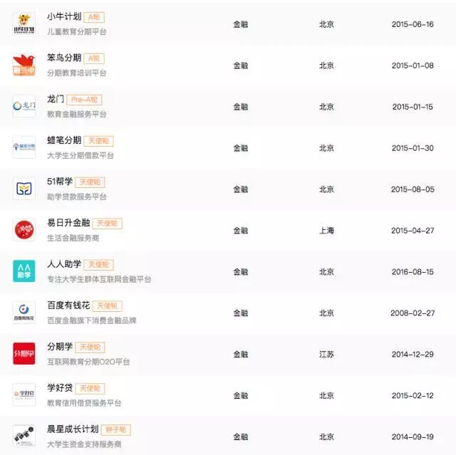 创业小平台方面也不乐观,大部分教育分期创业公司在2015年进场,但两年过去,依旧停留在A轮以内。