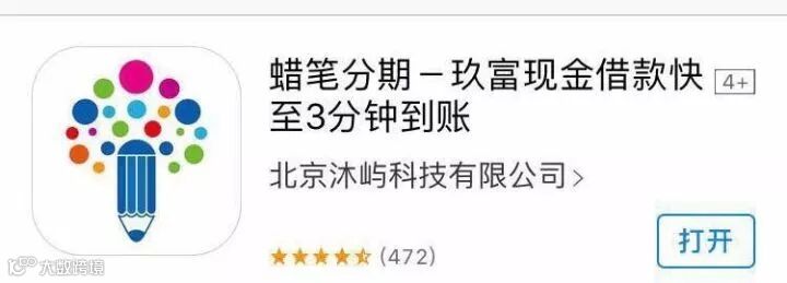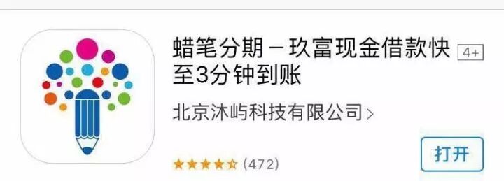 而蜡笔分期在苹果商店的下载简介,已直接变成了“玖富现金借款,快至3分钟到账”。