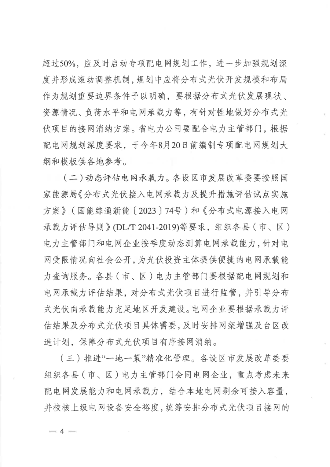 在具体措施方面,部分资源条件较好的地区可适当放宽新能源消纳利用率条件,分布式光伏渗透率超过50%,则及时启动专项配电网规划工作。