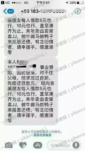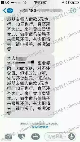 她知道逾期后,催收会开始往她所有的亲朋好友那里,群发短信催债,行话叫做“轰炸通讯录”。