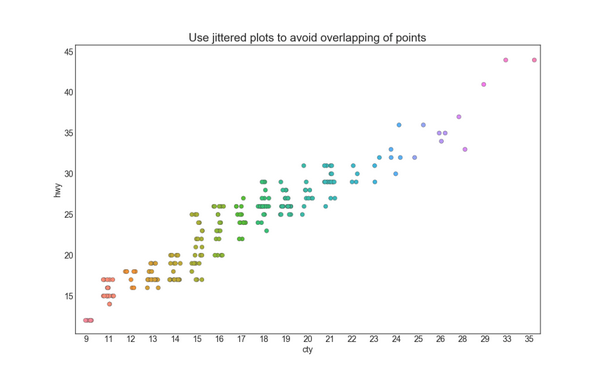 发散型包点图(Diverging Dot Plot)也类似于发散型条形图(Diverging Bars)。然而,与发散型条形图(Diverging Bars)相比,条的缺失减少了组之间的对比度和差异。