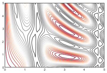ax.contour3D(X, Y, Z, 50, cmap='binary')