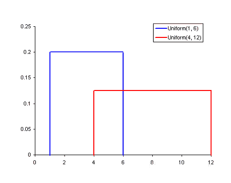 均匀分布是其中最基本的概率分布方式。它有一个只出现在一定范围内的值,而在该范围之外的都是0。我们也可以把它考虑为是一个具有两个分类的变量:0或另一个值。分类变量可能具有除0之外的多个值,但我们仍然可以将其可视化为多个均匀分布的分段函数。 -