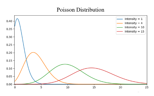 泊松分布与正态分布相似,但存在偏斜率。象正态分布一样,在偏斜度值较低的情况下,泊松分布在各个方向上具有相对均匀的扩散。但是,当偏斜度值非常大的时候,我们的数据在不同方向上的扩散将会是不同的。在一个方向上,数据的扩散程度非常高,而在另一个方向上,扩散的程度则非常低。