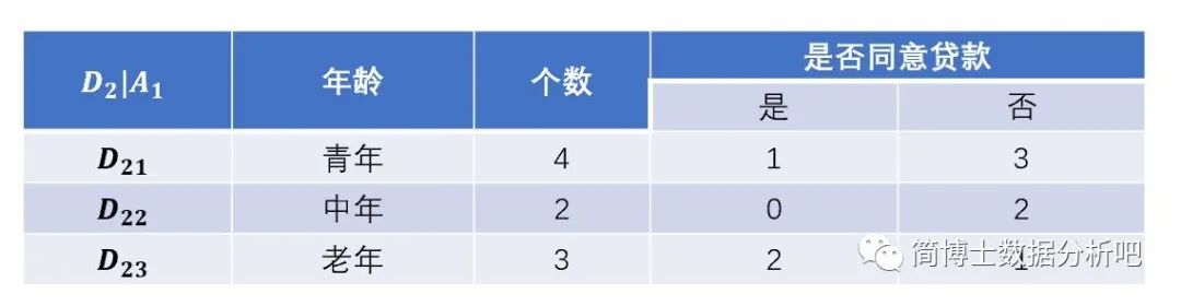 可以看出对于这个子集都是同意贷款,那么它的经验条件熵就为 。